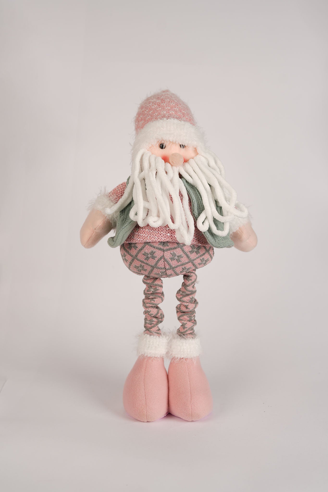 Charming pink gnome decoration with adjustable height legs and soft pastel details. This delightful character features a flowing white beard and cozy winter outfit, perfect for adding a whimsical, feminine touch to your holiday décor.
