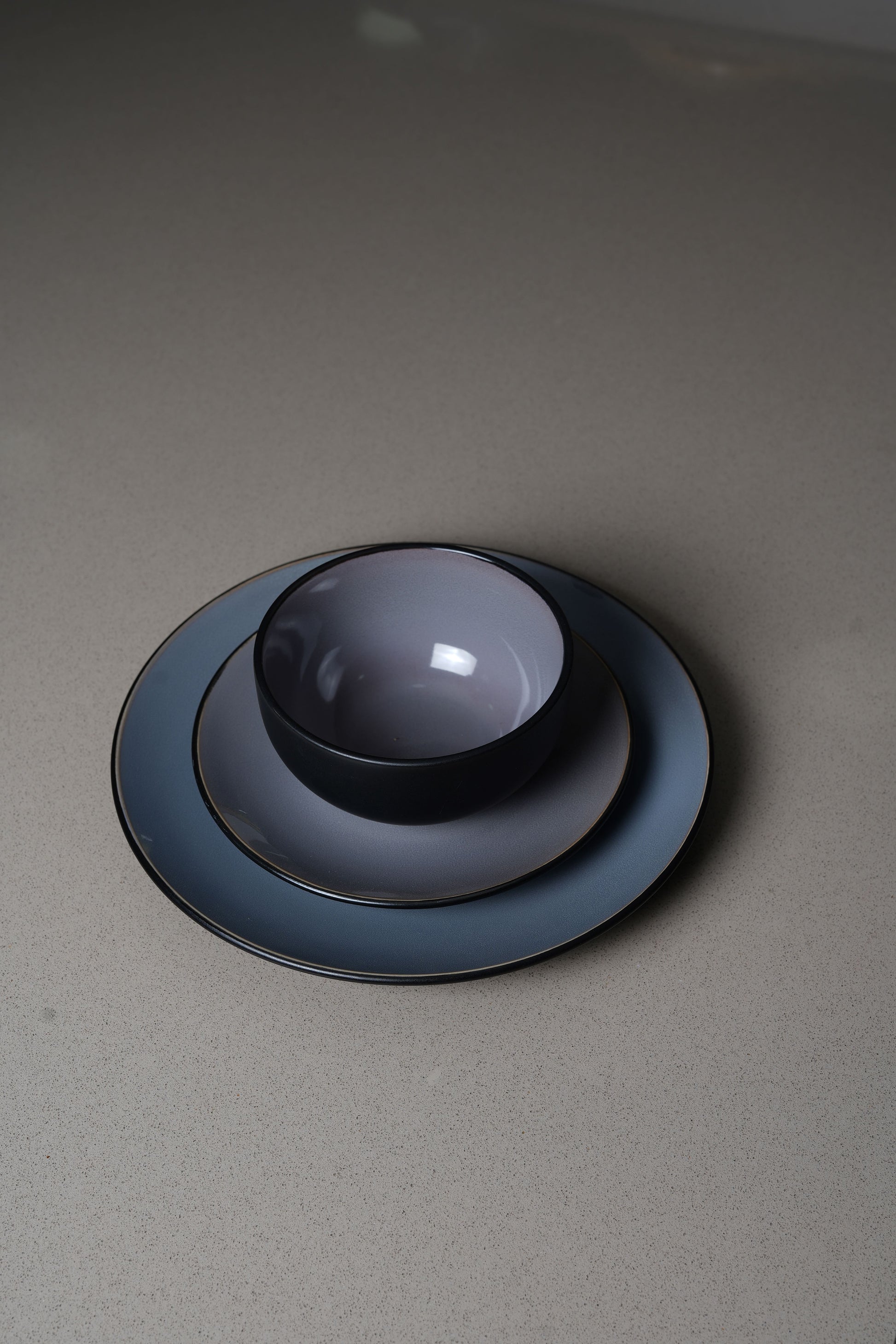 Create a dramatic and sophisticated table setting with this stunning charcoal black grey ceramic dinnerware set. The deep, rich color palette combines the boldness of black with subtle grey undertones, resulting in a modern and luxurious dining experience. This contemporary collection features a high-gloss ceramic finish that beautifully reflects light while maintaining an air of understated elegance. Perfect for creating striking contrast with colorful foods and ideal for both intimate dinners and formal occasions where you want to make a memorable impression.